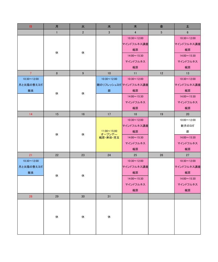 11月のスケジュール 12月のスケジュール クラス開催について 前日の17:00の時点でご予約がない場合は、クラスはお休みとなります。 クラス開催の場合は、当日でもご予約いただけます。 FacebookXBlueskyHatenaCopy